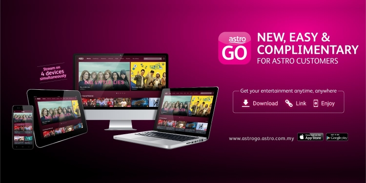 Pengguna Astro Go boleh mendaftar masuk sehingga 4 peranti (telefon tablet, PC atau Mac) untuk akaun yang sama. Selain aplikasi mudah alih, Astro GO juga boleh diakses menerusi laman sesawang astrogo.astro.com.my.
