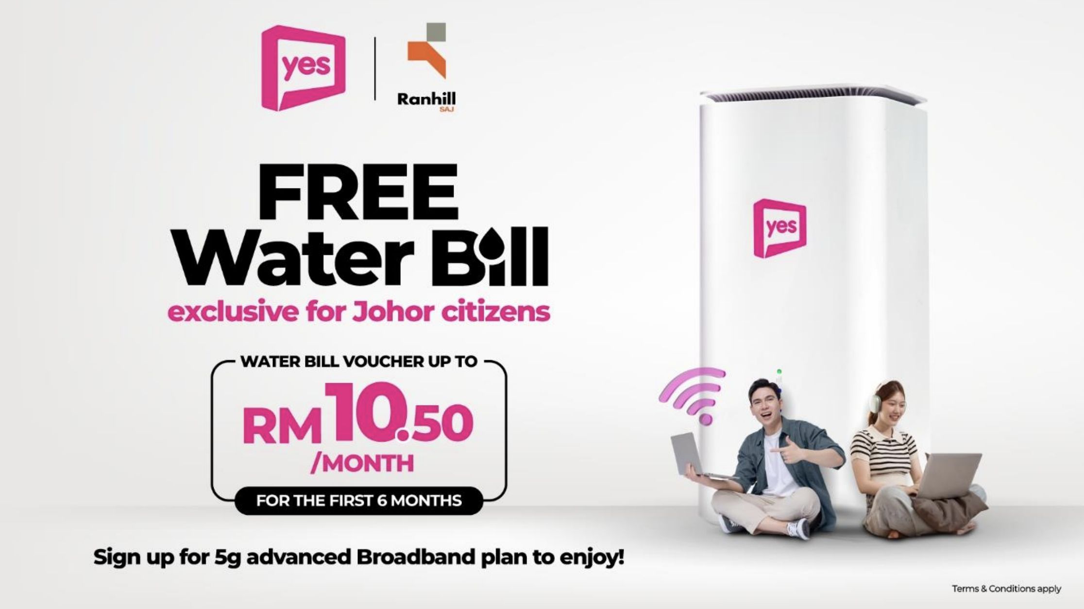 Melalui kerjasama ini, pelanggan yang layak akan menerima baucar bil air sebanyak RM10.50 sebulan untuk tempoh enam bulan pertama selepas melanggan pelan Jalur Lebar Yes 5G.